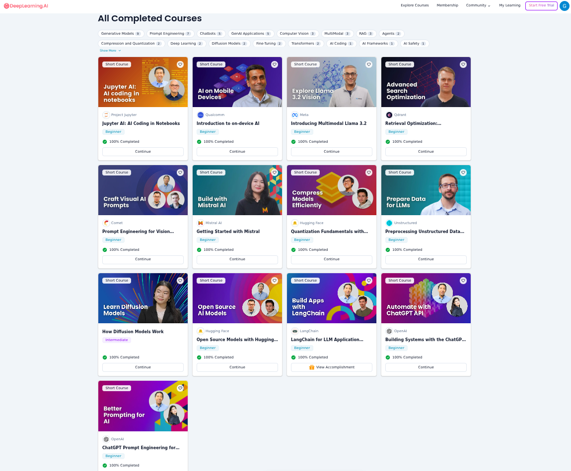 Completed some deeplearning.ai courses lately, and some partially completed.